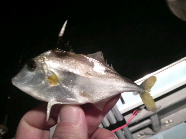 お〜い!今年もあと17日で終わりだよ〜!写真は昨日朝お客さんが 港で たまですくった ヘンテコリンな 魚? おいらは産まれて初めて見ましたが 昨夜忘年会があり 内房じぁポピュラーな魚みたい?で名前聞きましたが 忘れました! さて今やっと水温も 18度台に 落ち着きましたが いまだにいるだろうヤリイカは サバに邪魔され 泣く泣く直結で スルメ狙いになってしまうような 状態が続いてます! サバとイカは 同居してますが 異常だよあのサバダバはさ。 がそんなスルメは 今肝パンで 身も厚く刺身はもちろん塩辛最高なんで直結使い釣りに来てよ! それと 年末・年始の鍋の友にオニカサゴもよろしく。 本日はシケ明日も 南西吹きそう? 木曜日は スルメ&ヤリイカ出船予定ですがどうかな? ちなみに 空きは9割? 近々ビックチャンスあるかもよ? 本日ちょい二日酔いなんで家に引きこもりブログみたいな事書き込みました! では 次回ドカ〜ンとね。 (2010.12.14[Tue])