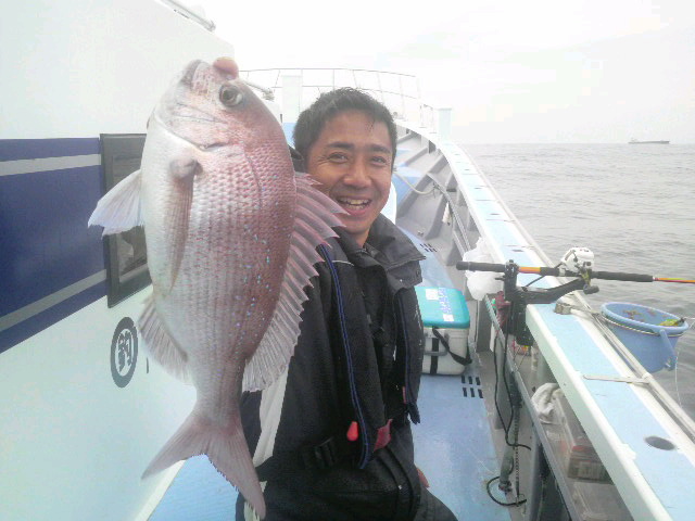 本日は 良型ポツポツ喰い10時過ぎには 入れ喰いタイムもありました!午後真鯛出てますので 簡単に釣果だけ。 13〜50匹と最低は 貸し竿の方でした! 良型多く混じりお土産には なったと思います。 午後鯛が 釣れたらまた 書き込みます。 お〜い鯛とったど〜! て写真の5,2キロと1,25キロ2枚だけ! イサギも 鯛も他の魚の事は あまり書かないからね! そこんとこよろしく! 明日はイサギまだ3名空きありますよ。 では明日また! (2011.6.18[Sat])