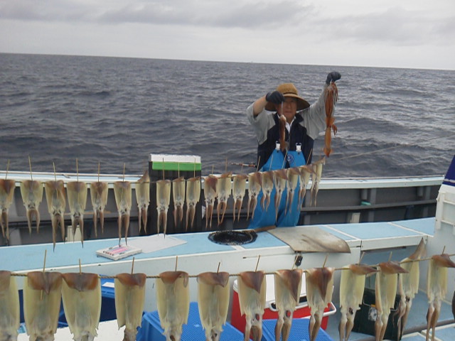 本日も朝イチから乗りありましたが 数が つかないね?でも ポツポツとあがりお土産には なりました。 イカ釣り初挑戦の方も 直結使い18杯とりました。 釣果は 13〜52杯と ここに来て校長ですので スルメ干しに来て! 明日は南西強く吹きそうで出船中止します。 19日(金)スルメまだ6名様! 20日(土)スルメまだ6名様! 21日(日)39満タン御礼! ほなさいなら。 (2013.7.17[Wed])