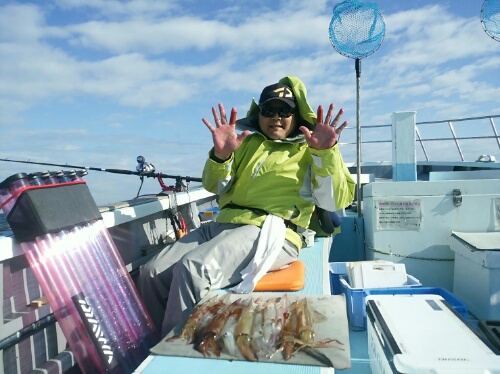 本日シケ後の出船で 水温上昇! それでもってヤリイカは 深い〜所に! 朝イチから 多点かけもありましたが何せ深いし 上げ下げ時間くうし 流し込みも出来ないし ヤリイカまじ 50センチオーバーが混じるので お土産には なりました! 釣果は 大半の方15〜20杯とれデカチンなので 十分だと言ってくれた方もいました! 明日は ありがたや〜で満員御礼に 月曜日から 五月入ってのゴールデンウィークは 空きいっぱいありますので 午前ヤリイカ 午後LTイサキよろしくね! ほな さいなら〜 ※30日のプレミアム出船 ヤリイカ〜オニカサゴ一日便二名様空きでましたので よろしくね! (2016.4.23[Sat])