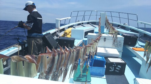 本日も 暑い中お客さん集まり出船出来ました! 朝イチから乗りがあり 終わりまでポツポツと! 潮が澄み水温上昇しちょいと深めの180〜190メートルでしたね 反応はかなりあり流し込みも何回も ですがあまり数つかなかったね で釣果は15〜50杯二番手49杯三番手47杯! 三番手の方は寝不足で後半美味しい時寝てました まぁお土産になったんで良かったです 睡眠 水分は多めにね 白浜沖連日束越えあり 今が チャンスですよ 明日はごめんなさいで臨時休業で 木曜日 金曜日は空きいっぱい 今期のスルメはいつもと違い群れがムレムレですよ ほな さいなら〜! 本日写真は 久しぶりに遊びに来て下さったドクター近藤氏でした! (2016.7.19[Tue])