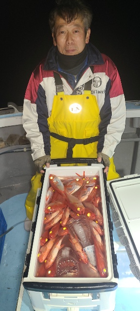| 本日も夜遊びお客さん集まり出船出来ました! 今夜も暗くなってからは8989喰いました クーラー満タンになった方などもいましたね! 10月よりムツ中心で出船し12月後半よりキンメ中心でシケ多くご予約いただいたお客さんにはご迷惑おかけしましたが今月明日を持って終了します! また10月のデカムツから開始しますのでよろしくお願いいたします 今夜は写真わすれましたが お土産バッチリに! ほな おやすみ〜 (2023.2.26[Sun])