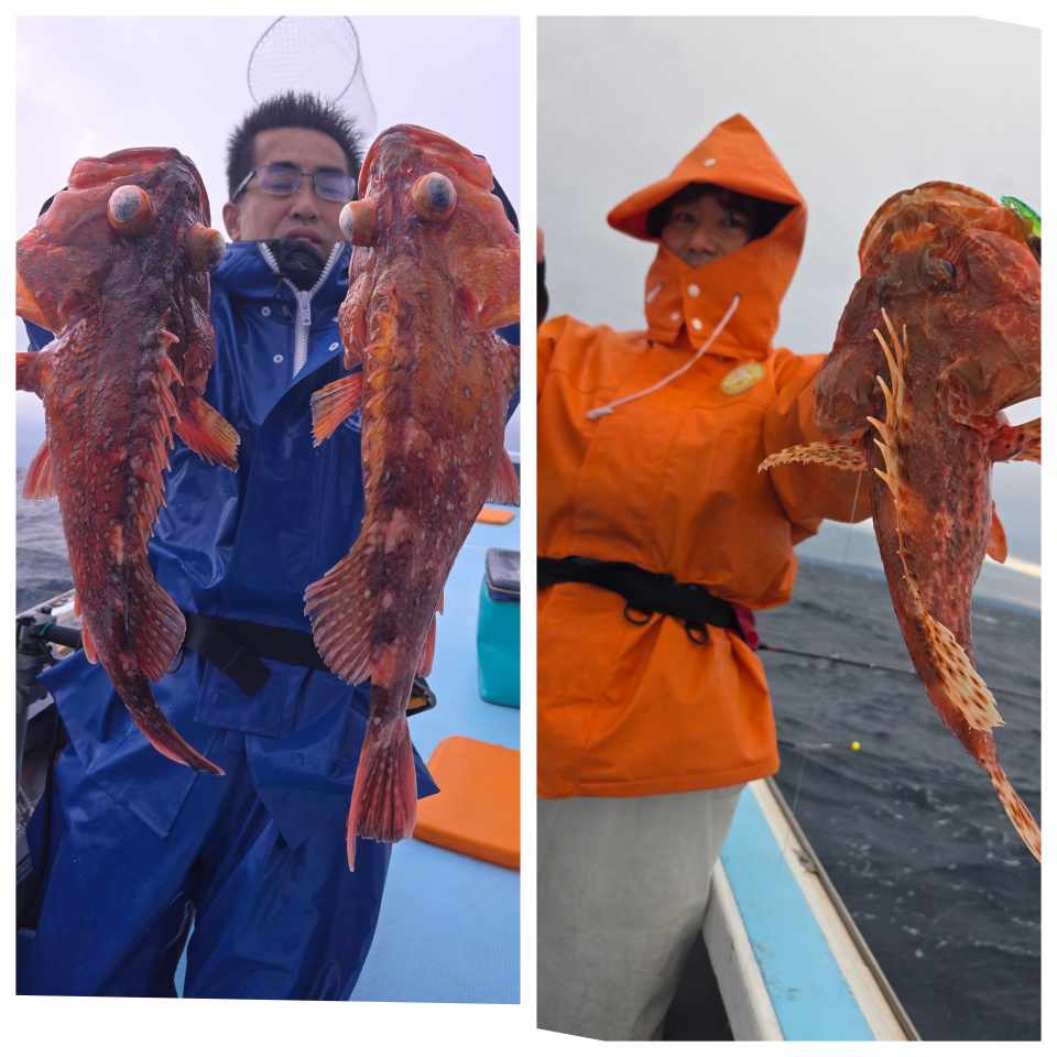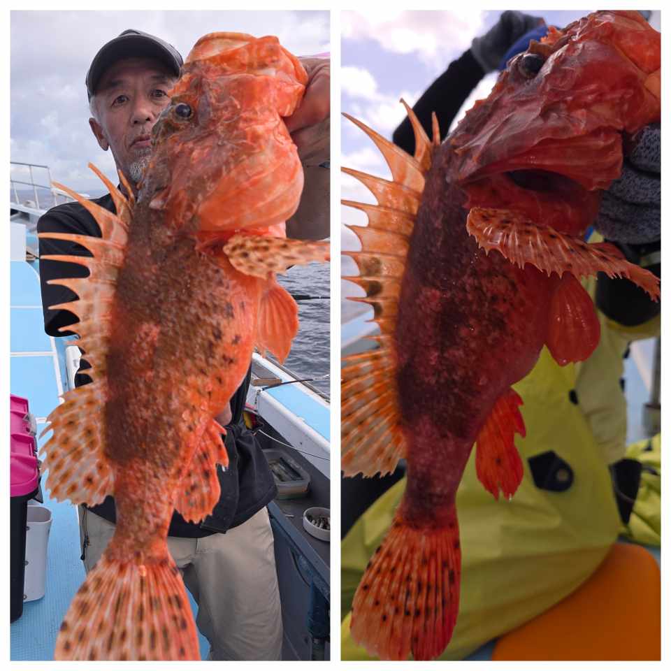 今週も土曜日オニカサゴへ出船!(次回オニカサゴ11月1日土曜日まだ3名様です!) 朝イチはそうでもなかったけど次第に風と雨で海悪かったね! 中盤まで カンコや夢カサゴが8989しました! 後潮が代わりオニカサゴもたまに顔見せてくれましたが 海悪くて底とりずらく苦戦しました 釣果は頭でも四匹でしたが 他のカサゴがありお土産にはなりました! 船酔いの方も出てしまいごめんなさい 夜遊びですがなかなか予報が良くならず中止が続いています とにかく当日にならないと予報がコロコロ代わるので 当日必ずご予約の方は電話確認をお願いいたします ほなさいなら〜 (2025.10.25[Sat])