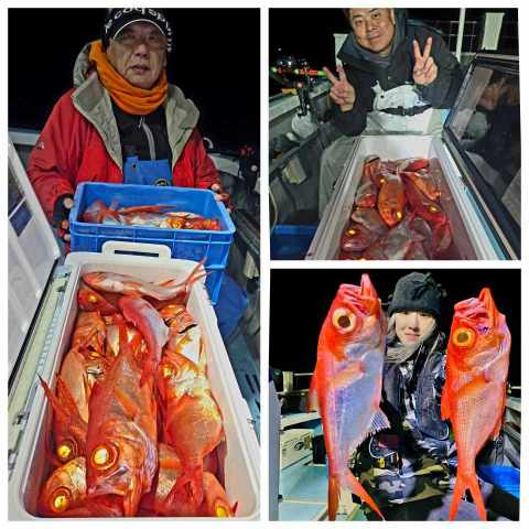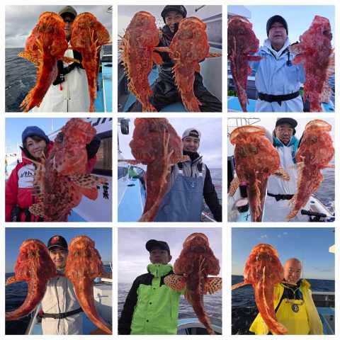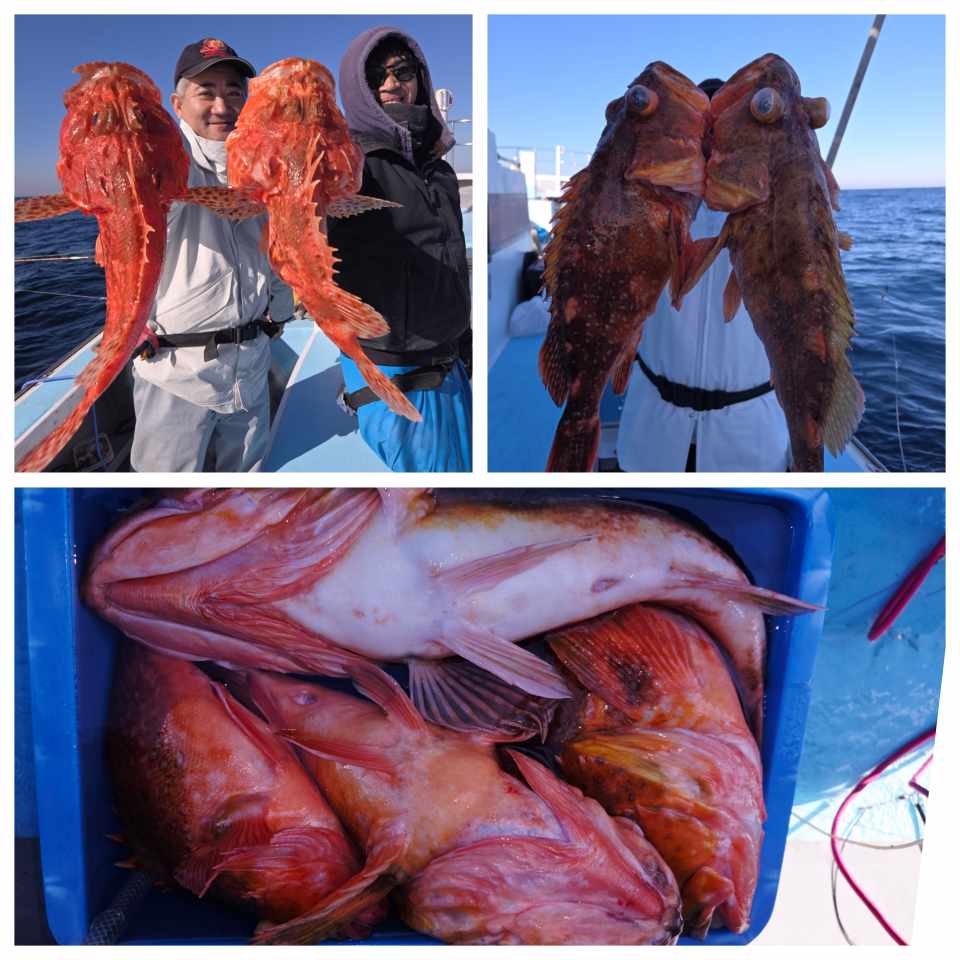本日もお客さん集まりオニカサゴへご案内! まじで10時ごろまで潮が流れず大苦戦! 10時ごろから 潮か流れだして ニキロ前後のカンコがバリバリつれましたよ オニは若干名様が 坊主になりましたが 良型カンコが船中40匹オーバーとれましたので ご勘弁を! 予報悪く本日午前で年内終了です 今年も沢山のお客さん集まっていただきありがとうございました! 新年2日ヤリイカから出船しますので 初釣りに来てね(オニカサゴ3名様より出船します) ほな良いお歳を〜 (2025.12.29[Mon])