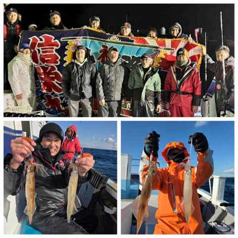 本日初出船でヤリイカに! 出船前にお神酒を飲んで みかんとお菓子を投げて大漁祈願していざ! ですが〜反応少なく撃沈! 最高四点かけなどありましたが… 釣果はツ抜けせずでした! 案外風も強く釣りづらく散々な初日となりごめんね! しばらくは夜キンメで頑張りますよ まだまだ今月土日やら平日も空きいっぱいありますので! ほな良いお歳を〜! (2026.1.2[Fri])