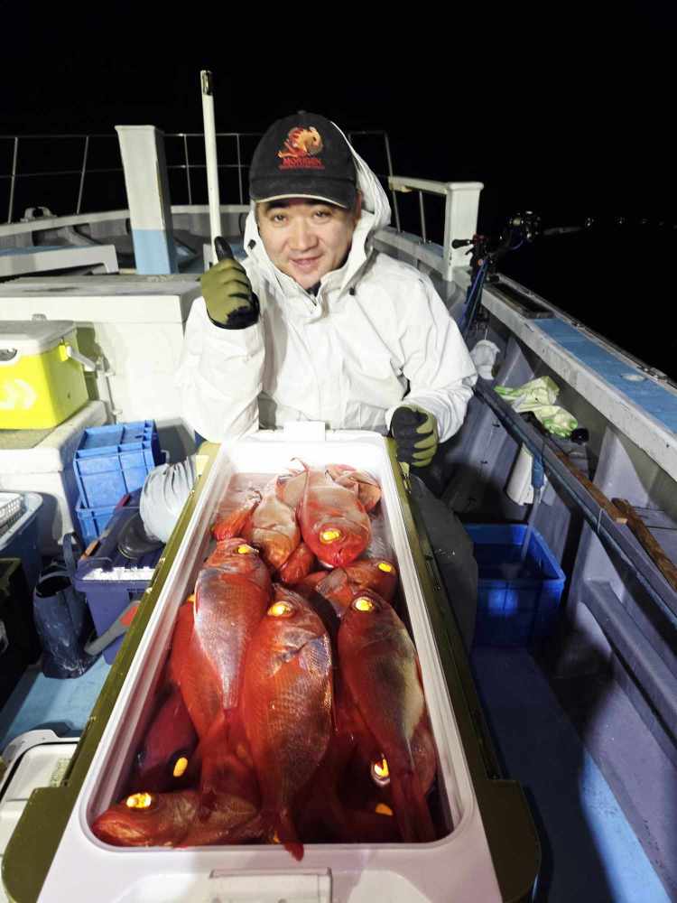 今夜は南西の風が心配でしたが お客さん集まり出船しました! マズメから喰い大きく流せましたね! 上がるキンちゃん良型多く19時前にはクーラー満タンになった方も! 後半いまいちの喰いになりましたが 皆さんお土産バッチリになったと思いますよ 地元のスーパーで30センチ位のキンちゃんが 1800円だったとか聞きますよ! キンちゃん癖のない魚ですので お刺身 ナメロ 天麩羅 ヒラキなどいろんな料理でお試しを 明日月曜日はまた出船中止決定だし なかなかいい予報が… 今月いっぱいで終了予定であと何日出れるやら ほなお休み〜 (2026.2.1[Sun])