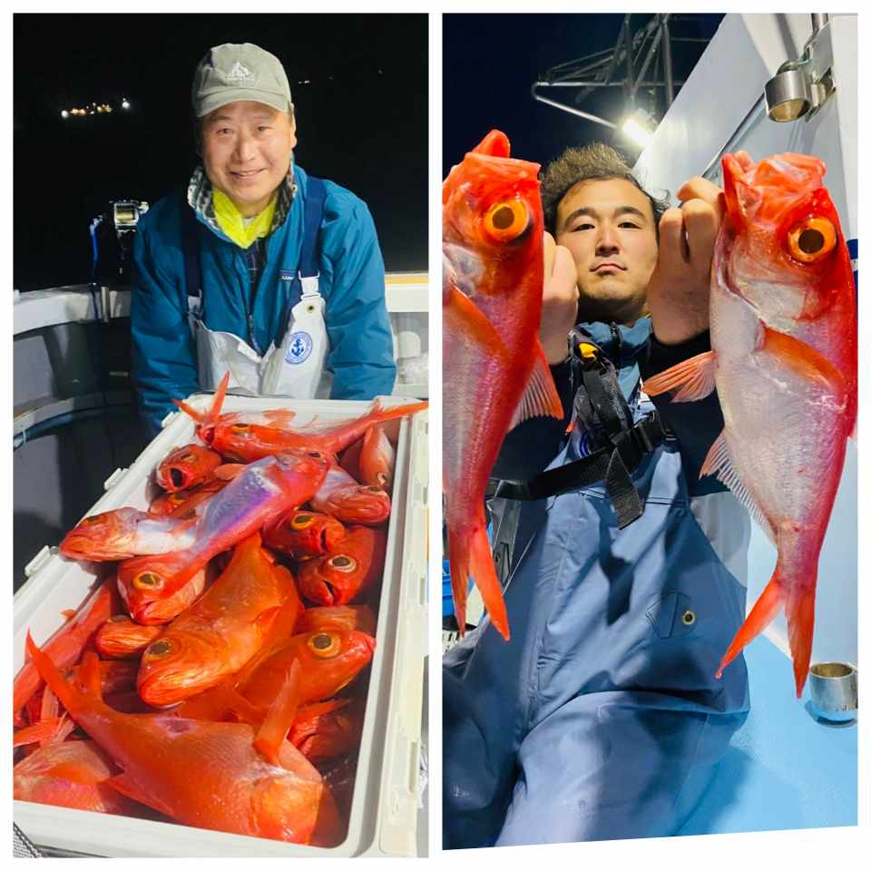 | 本日はいい凪での出船でした! マズメから型出ますが… 反応は底から100メートルも出ていましたが バリバリとは行きませんでしたね?あと 時々大型の40センチオーバーも見られ 前回などはキロオーバーも! 明日もと行きたいですが 金曜日・土曜日共に予報悪く中止決定です! 今期の夜遊びも日曜日あと1日で 満員御礼となってます 本日少しお祭りあり写真とりわすれましたが お土産にはなりました ほなお休み〜 (2026.3.5[Thu])