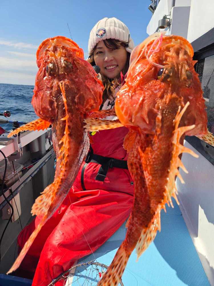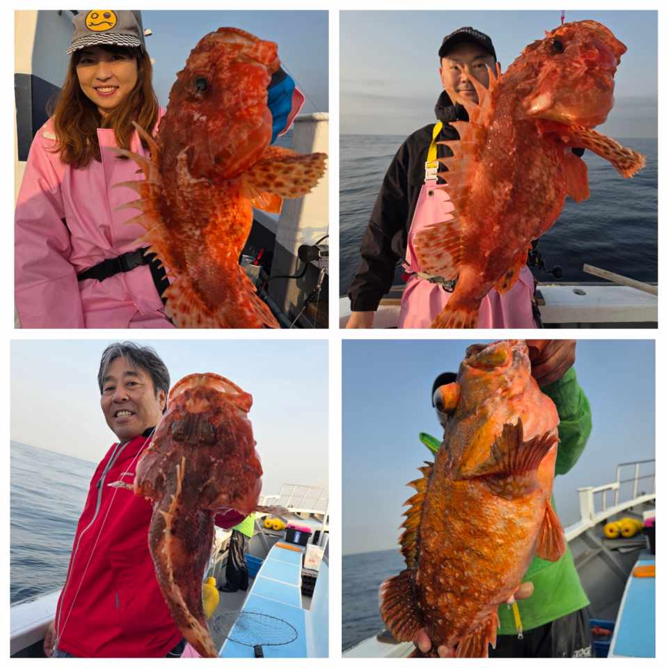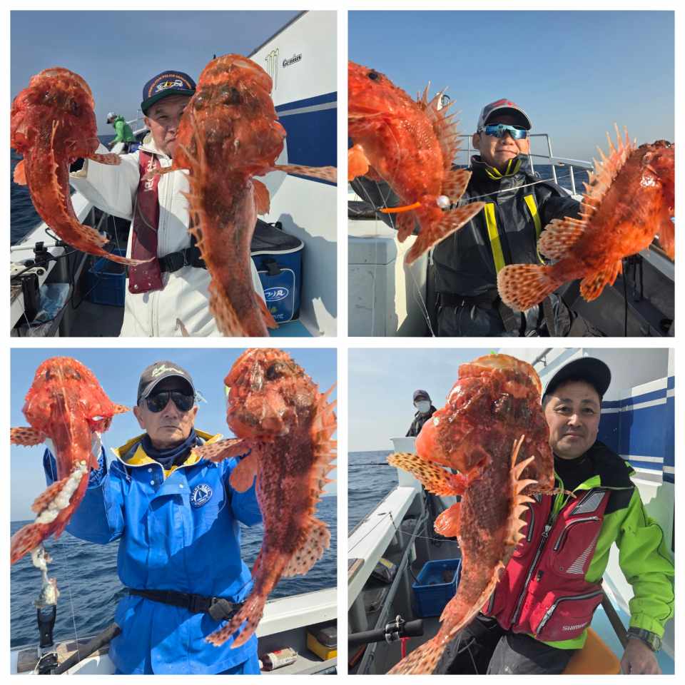 本日オニカサゴ満タンありがと! 朝一からカンコとオニも顔見れどこに流してもポツポツと! オニ潮良く三回ダブルあり 楽しめましたよ 釣果は坊主なしの頭8匹が2名様(オニ初挑戦の方も五匹)で校長ざんした! オニカサゴは3名様より出船しますが 来たい方は早めのご予約でお願いいたします ほなさいなら〜 (2026.3.22[Sun])
