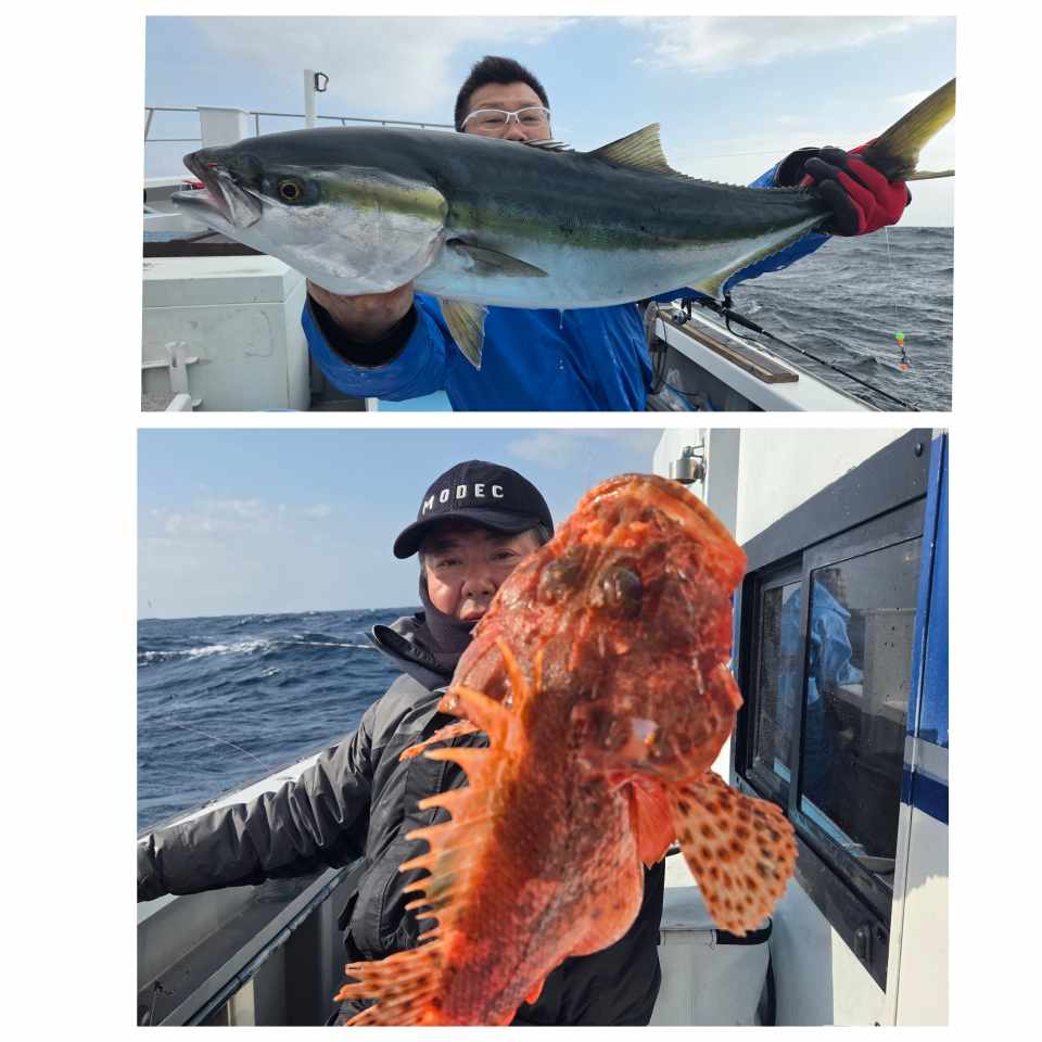 本日朝一はそうでもなかったけど 現場着いたら風強まり海悪かったね! 底とりも少し困難でした! 中盤よりポツリポツリと良型混ざりで上げていた方も! 釣果は頭で六匹二番手五匹で 船酔いの方もいて 残念です 明日はヤリイカですが 撃沈覚悟の方お待ちしています あっ大型カンコや ワラサ?ブリ?も上がりお土産バッチリの方も! オニカサゴ・ヤリイカは3名様よりの出船となりますので悪しからず ほな さいなら〜 (2026.3.20[Fri])