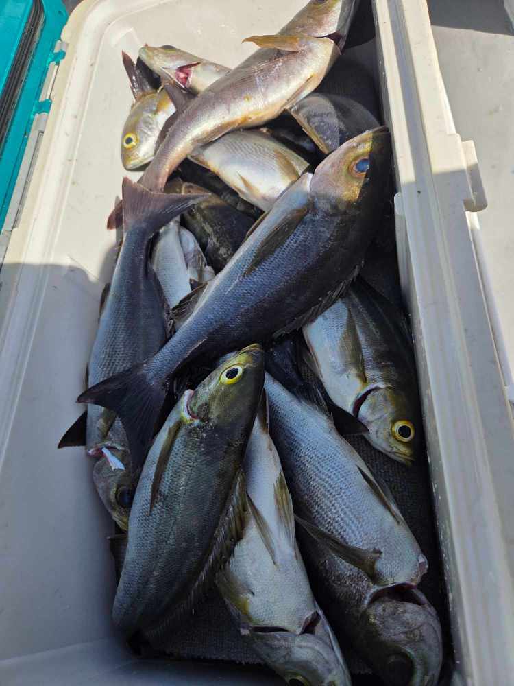 本日常連さんと仲間に付き合ってもらいイサキテスト釣行!う〜〜微妙でしたが 良型中心であがり21〜37匹船酔いしてしまい,9時30分にあがりました! 各ポイントまだまだコマセが 効いてないから反応がいまいちでしたが これから水温も上昇するし そのうちにパクパクと喰って来ると思いますよ! ライトイサキは2名様より出船しますのでよろしくお願いいたします! ライトイサキ今期もレンタルタックル無料貸し出ししますので 気になる方はお問い合わせ下さいね あと今週土日は凪予報ですので 最後?ヤリイカ・オニカサゴ良かったらどうぞ! ほなさいなら〜 (2026.3.27[Fri])
