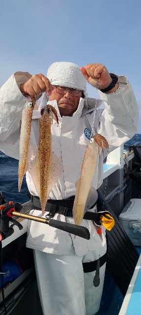 本日雨風の予報で 海悪そうですがお客さん出船できるならと集まりありがとう!朝イチは雨風大したことなかったけど潮がいまいちだし乗りも?? ですが 後半潮代わり浮いた反応に合わせてバリバリやった方も!! ヤリイカも浮きますので! 本日180メートルで140メートル〜150メートルで多点かけしていた方もいたので いまだにイカは底ないるなんて思わないほうがいいよ! 寒いしバラシも多く大変な思いをしましたが 釣果は12〜50杯で最低は貸し竿の方で スルメ・デカチンもまざりましたので お土産にはなりました! 明日は定休日で4月もまだまだヤリイカやれそうなんで ご予約お待ちしています ほなさいなら〜 (2022.3.22[Tue])