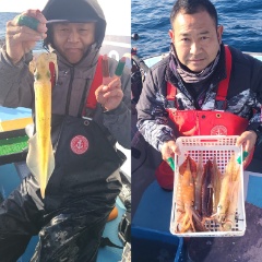 本日も朝イチまごつきましたね!でもちょっと移動し潮が代わりポツポツと! 途中6点かけもありました! 釣果は本日三名様で23 25 28杯でデカチン混じったのでお土産にはなりましたよ! 明日もヤリイカ出船しますのでよろしくお願いいたします ほなさいなら〜 ※今週末土日また予報が悪く出船中止か? ご予約の方は必ず現地確認して下さい (2024.1.17[Wed])