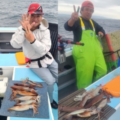 本日昨日ノリノリでお客さん五人釣られて来てくれました!朝イチから乗りありましたが 潮が流れなかったのか 多点かけあまりなく最高5点かけ! たまに流し込めましたがやはり数が付かなかったね? でも皆さん頑張って釣果は27〜46杯二番手35杯で最低が 27杯で上出来ですね なんか明日から午前午後ともにシケそうで次回は金曜日からかな? シケ後バリバリとなればいいけどね? ほなさいなら〜 ※ポイントは港前行程10分のところだよ! (2024.10.7[Mon])
